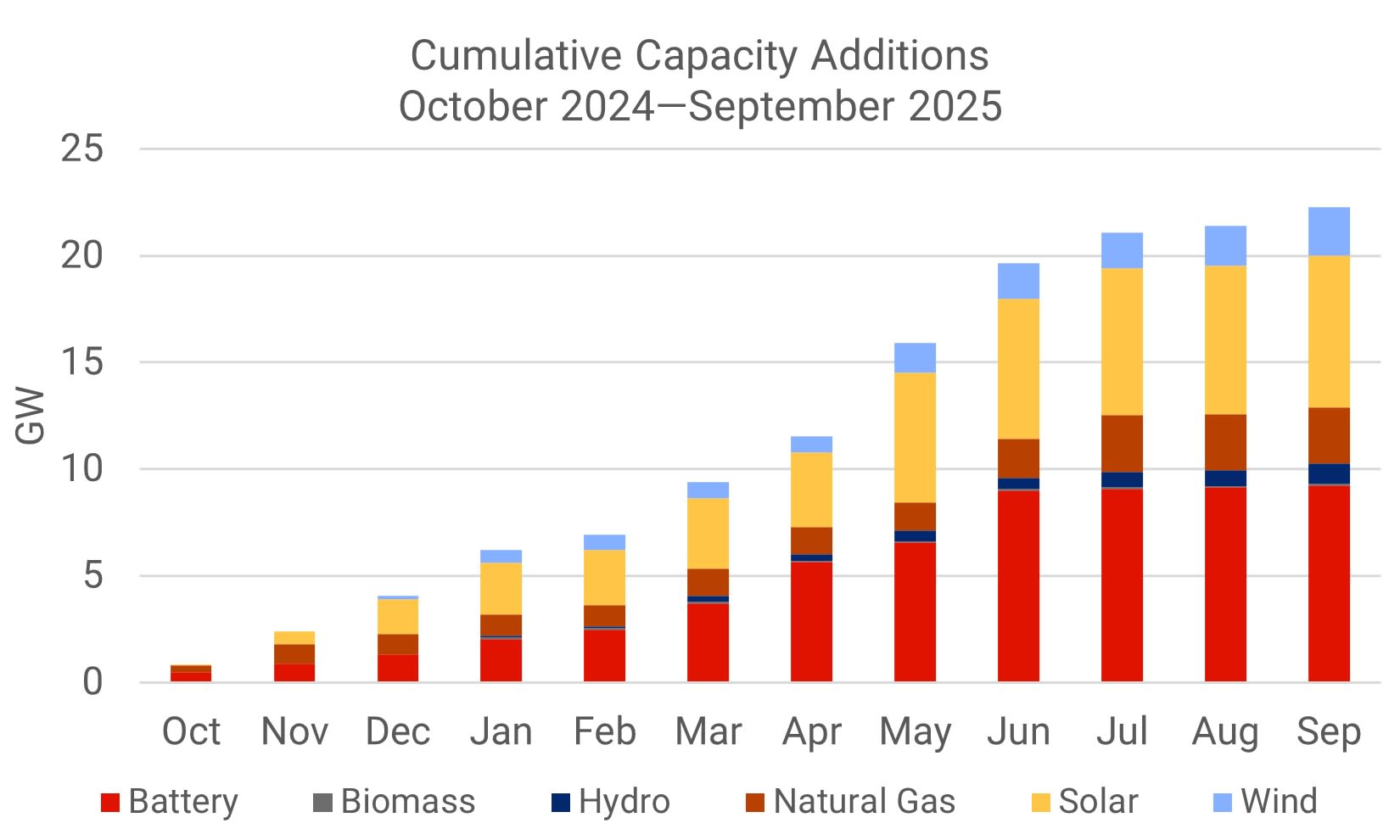 - Interconnection-wide, over 6.5 GW of new solar capacity and nearly 7 GW of battery storage have been added since last summer.