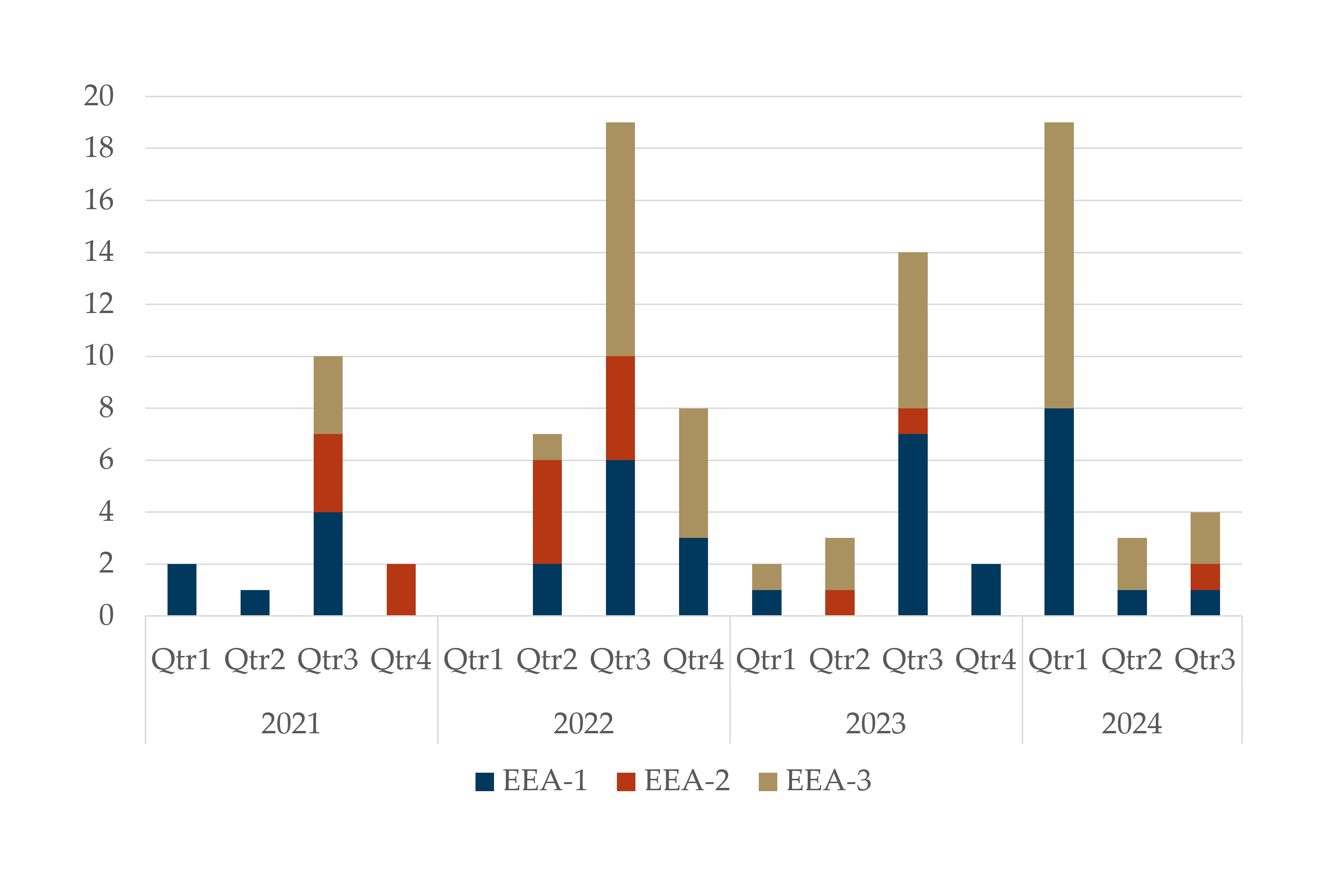 Between January and the end of July 2024, Western Interconnection entities initiated 24 energy emergency alerts (EEA). Fourteen alerts were EEA-3s, the most severe level. EEA-3 alerts concern events with the potential for load shedding, although no entities shed customer load during these events. There were 21 EEAs in 2023, nine of which were EEA-3s. The average duration of the EEA-3s in 2023 was 2 hours, 27 minutes, with the longest lasting just over six hours.